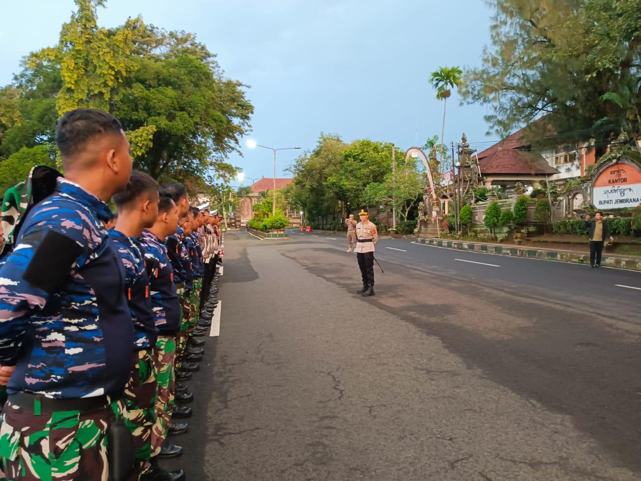 Apel di depan Kantor Bupati Jembrana melibatkan personel gabungan dari TNI, Polri, Dishub, Satpol PP, Damkar dan Pecalang.