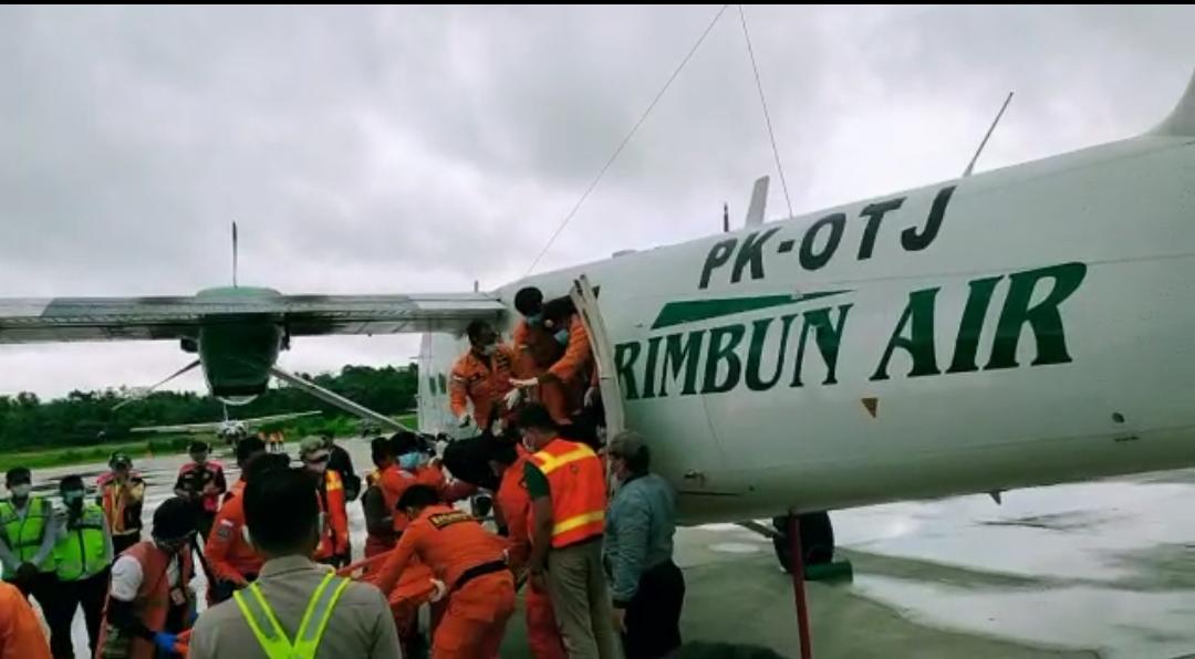 Tiga korban meninggal dunia jatuhnya pesawat PK OTW milik Rimbun Abadi Air tiba di Bandara Timika, Kamis (16/9/2021) pukul 08.30 WIT.