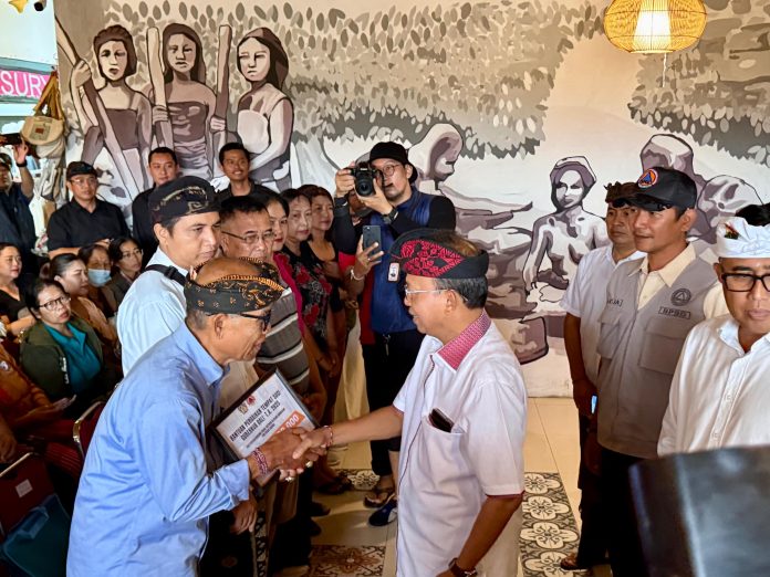 Bencana banjir akibat cuaca ekstrem yang terjadi Rabu 10 September minggu lalu, memberi dampak luar biasa terhadap warga Bali. Sejumlah bangunan, fasilitas umum, korban jiwa dan jiwa menyebabkan dua tempat suci yang mengalami kerusakan. Untuk meringankan duka akibat bencana ini, Gubernur Bali Wayan Koster didampingi Wali Kota Denpasar, I.G.N Jaya Negara, sejumlah pejabat dan stakeholder terkait menyerahkan bantuan sebesar Rp 3.424.500.000.