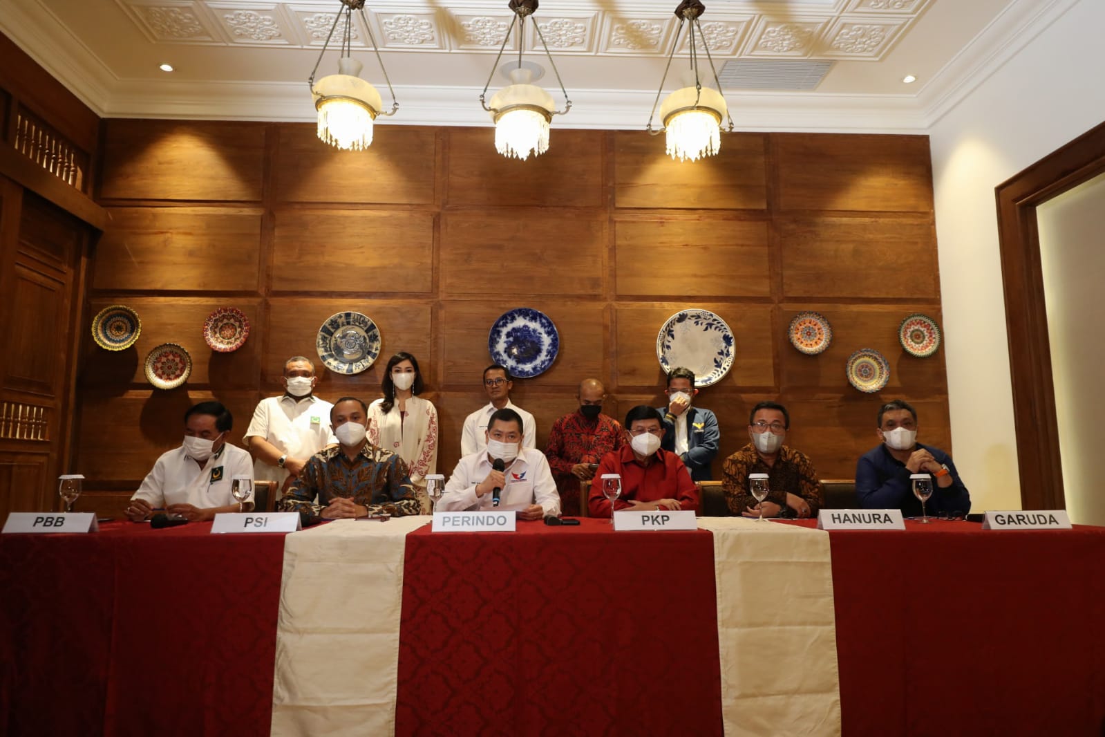 Partai Persatuan Indonesia (Perindo), PSI, Partai Hanura, PKP, PBB dan Partai Garuda membahas wacana koalisi untuk Pemilu 2024.