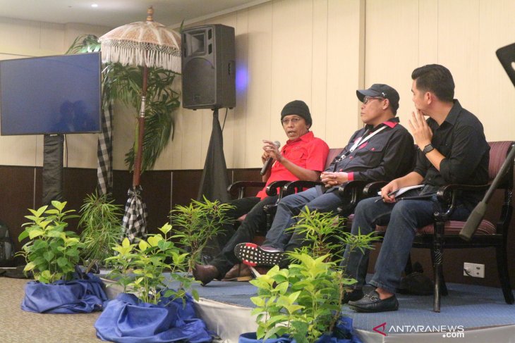 Politisi PDI Perjuangan Adian Napitupulu (kemeja merah) dalam diskusi, di Bali, Jumat. (Rangga Pandu Asmara Jingga)