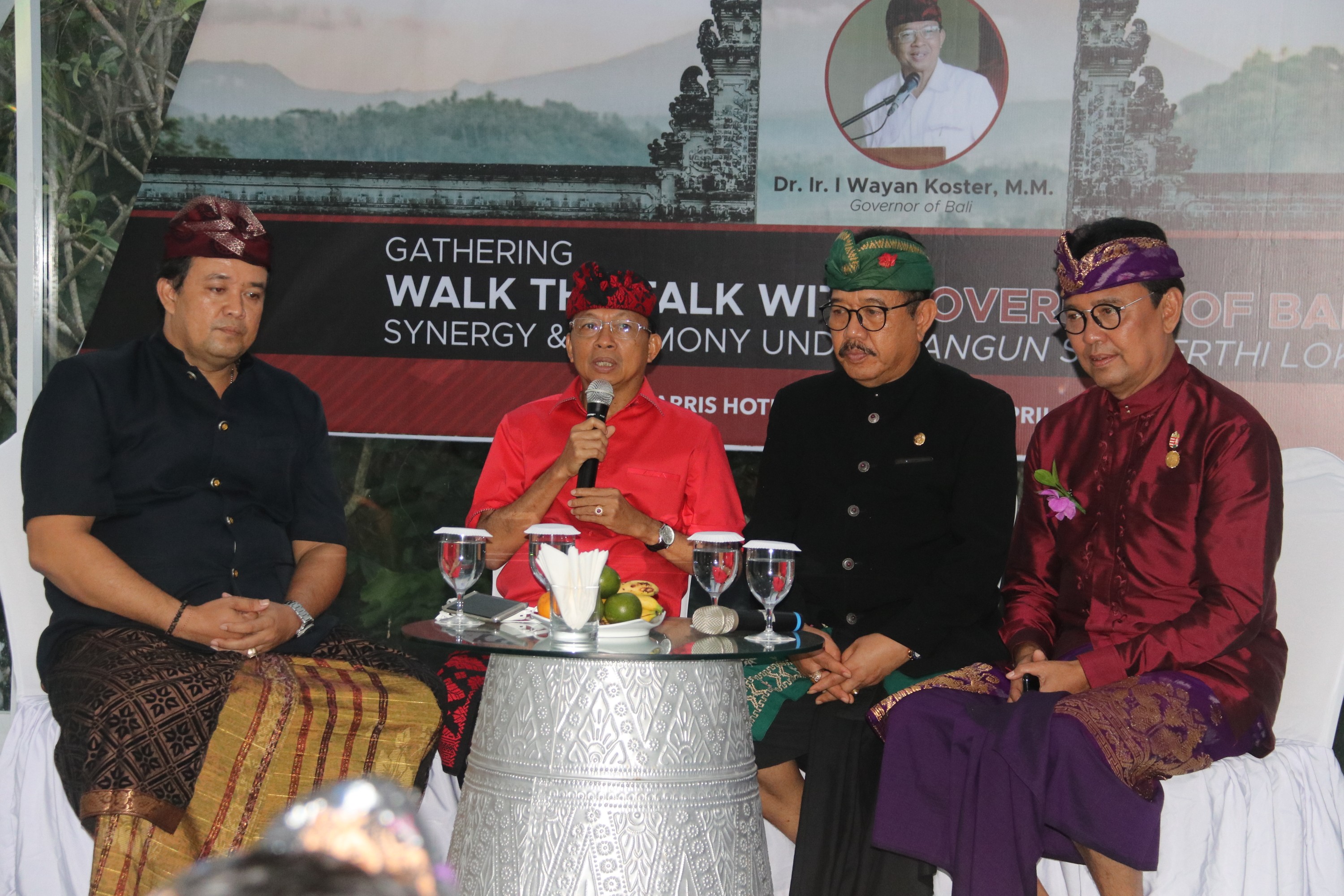 Acara bertajuk ‘Walk The Talk with Governor of Bali : Sinergy and Harmony Under Nangun Sat Kerthi Loka Bali’ yang diselenggarakan di Harris Hotel, Sunset Road Kuta, Kamis (11/4) petang.