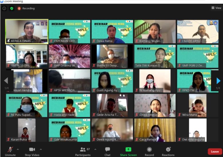 Webinar dilaksanakan tanggal 12-14 Juli menyasar 600 siswa SMP negeri dan swasta serangkaian kegiatan MPLS Tahun 2021. Webinar dalam 2 sesi setiap harinya itu menggandeng 6 orang Relawan Teknologi Informasi dan Komunikasi (RTIK) Provinsi Bali sebagai narasumber selain narasumber dari Diskominfos Kota Denpasar. Literasi Media ini merupakan kerjasama Dinas Kominfos Kota Denpasar dan Dinas Pendidikan Pemuda dan Olahraga Kota Denpasar.