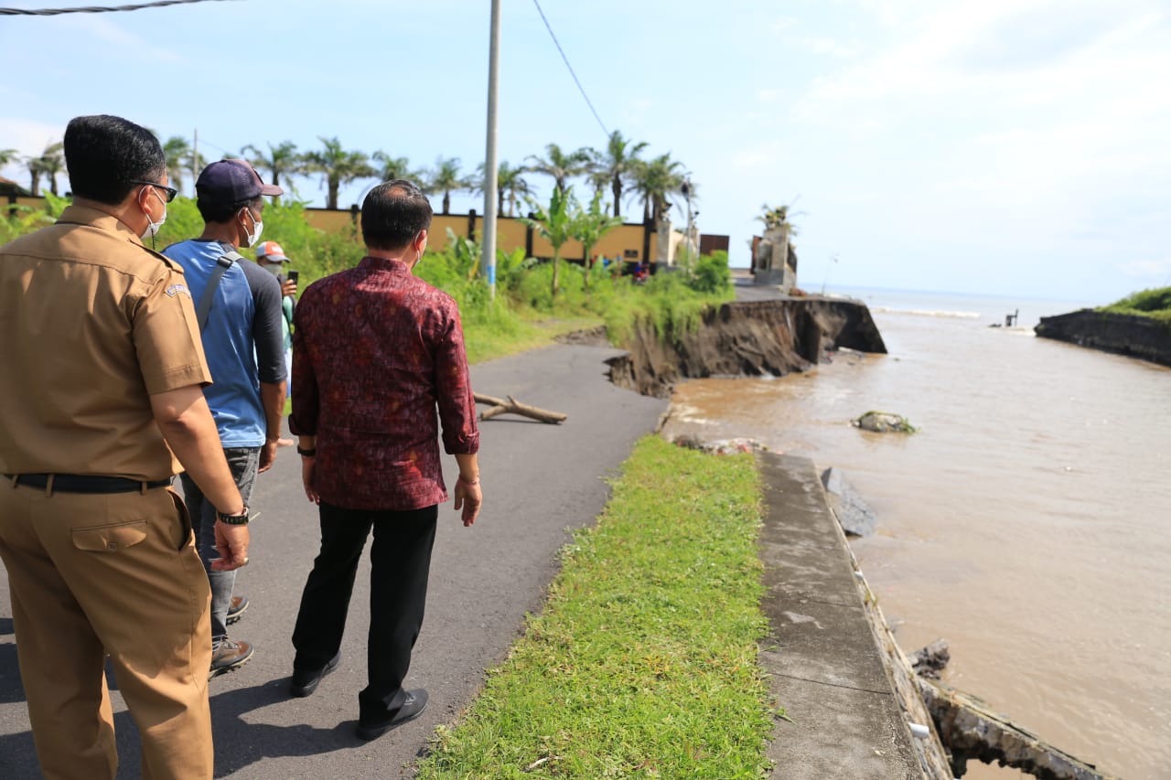 Sebelumnya jalan ini sudah pernah jebol akibat terkikis air sungai, tanah milik warga di bantaran sungai juga terkikis aliran sungai. Bupati Suwirta bersama BWS mengatakan Tahun 2022 ini langsung di tangani, tidak lagi tambal sulam melainkan ditangani secara total. “Pemerintah pusat melalui Kementerian PUPR tahun 2022 ini, mengalokasikan dana untuk pembangunan dan pemeliharaan jaringan pengaman pantai di Kecamatan Nusa Penida dan penangan bencana ini langsung masuk didalamnya,” Ujar Bupati Suwirta