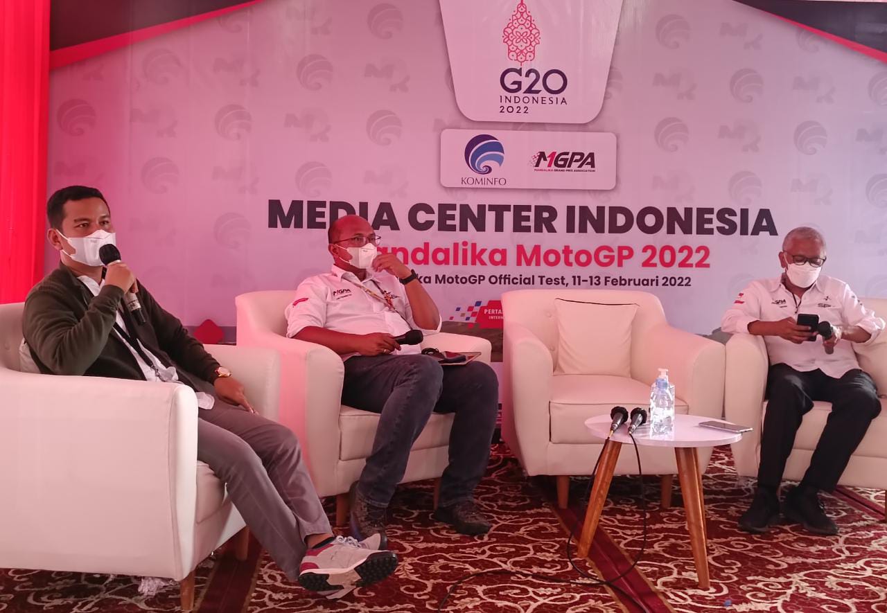 Foto: Konferensi pers di Media Center Indonesia (MCI) MotoGP Mandalika, Lomobok NTB, Minggu (13/2/2022).