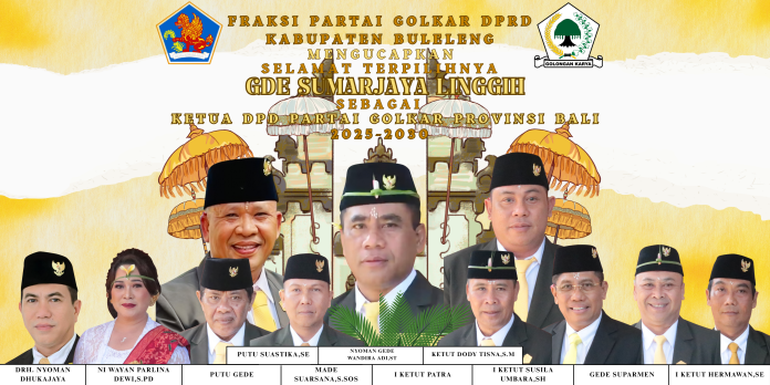 Para kader Partai Golkar Kabupaten Buleleng yang duduk sebagai anggota Fraksi Partai Golkar Kabupaten Buleleng periode 2024 – 2029 mengucapkan selamat atas terpilihnya Gde Sumarjaya Linggih yang akrab disapa Demer sebagai Ketua DPD I Partai GOLKAR Bali periode 2025 – 2030 melalui Musda XI DPD Partai Golkar Bali pada Minggu, 13 Juli 2025 lalu di The Meru, Sanur, Denpasar.