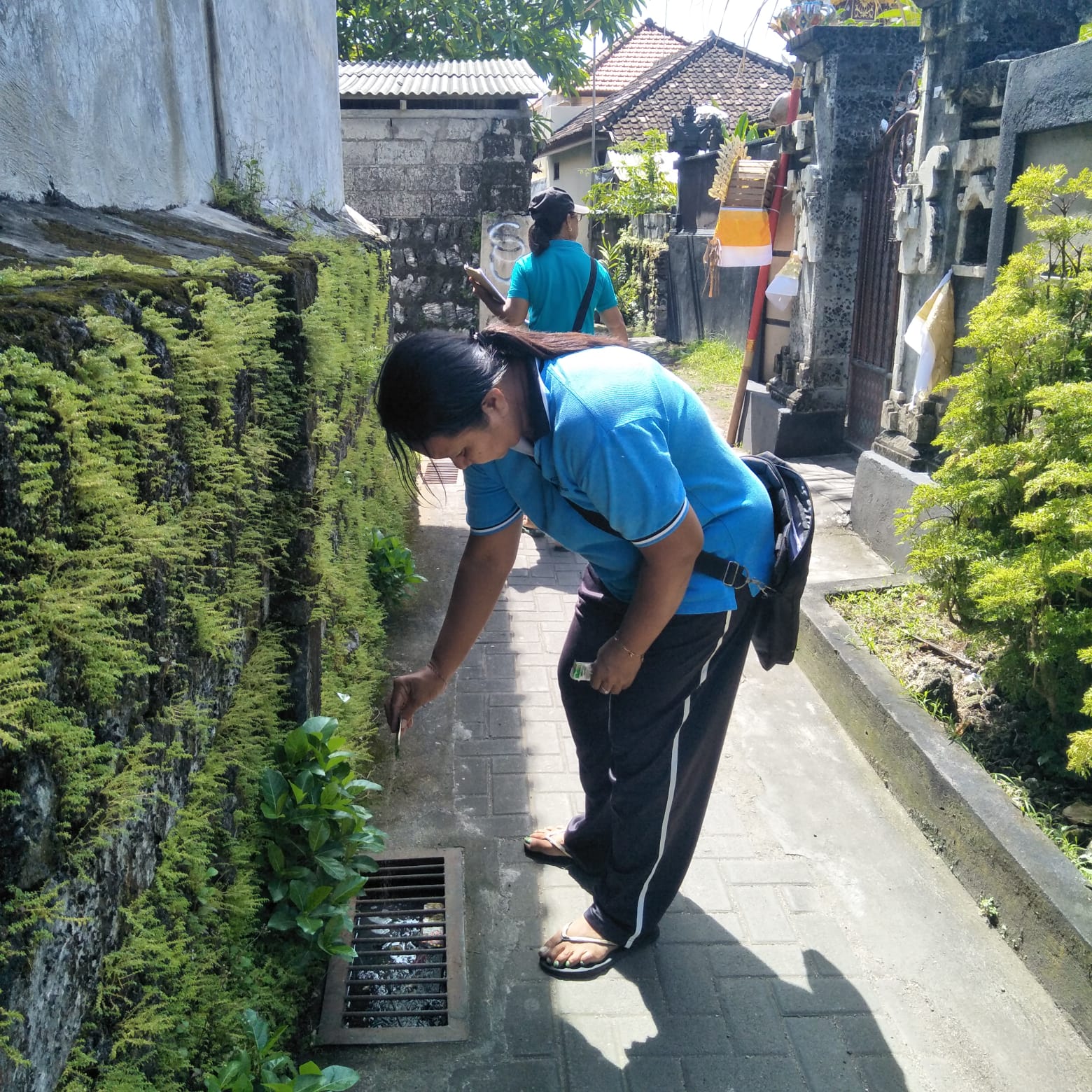 Pemerintah Kota Denpasar terus berupaya menurunkan terjadinya angka kasus demam berdarah. Tenaga Jumantik dari Dinas Kesehatan Kota gencar melakukan kegiatan foging serta Pembrantasan Sarang Nyamuk (PSN). Puskesmas 3 Denpasar Selatan saat ini melakukan kegiatan Penyelidikan Epidemiologi, PSN, Larvasidasi dan Penyuluhan kepada warga yang dilakukan di Br. Dukuh Serangan, Senin (23/1)