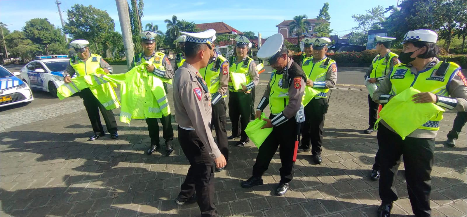 Satlantas Polres Jembrana melaksanakan Apel Kesiapan menjelang pengamanan Hari Raya Nyepi dan Idul Fitri 2023 di areal depan Pura Jagatnatha Jembrana, Rabu (8/3/2023) pukul 16.00 Wita.