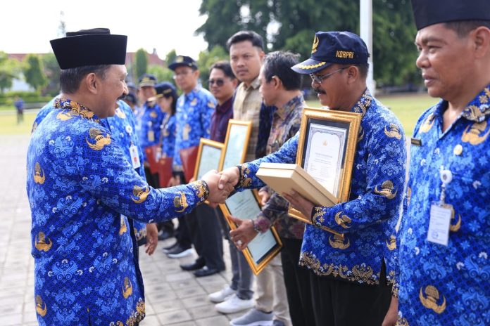 Di Akhir pelaksanaan upacara Apel, Pj. Bupati Jendrika juga menyerahkan hadiah kepada ASN berprestasi dan menyerahkan penghargaan kepada ASN yang memasuki masa Purna Bakti.(humasklk/puspa).