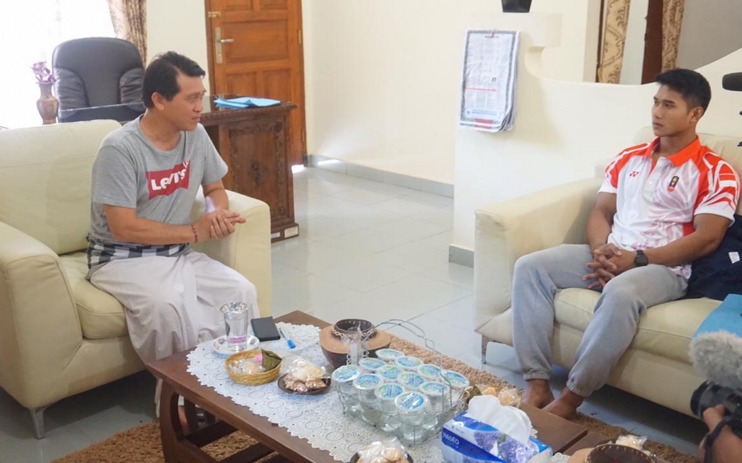 I Komang Ardiarta (23) saat bertemu Bupati Klungkung, I Nyoman Suwirta di Rumah Jabatan Bupati Klungkung, Senin (09/12).