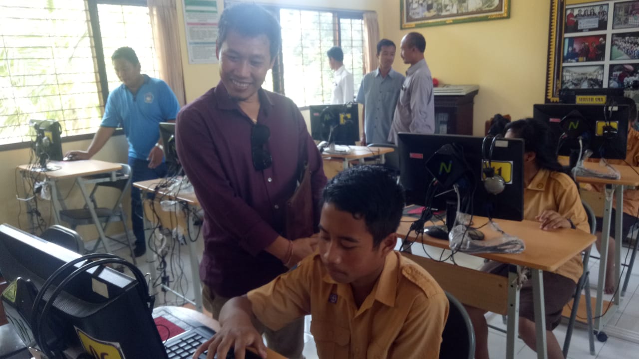 Gede Mangun saat mengecek keberadaan computer di Guru Kula, Jumat ( 25/10/2019) mengaku bantuan yang diberikan jauh dari unsur politik.