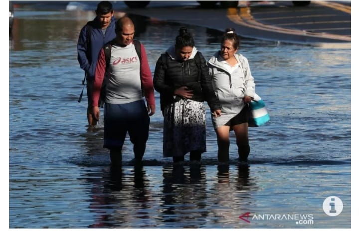 Media sosial diramaikan banyak video yang menunjukkan mobil-mobil yang nyaris tenggelam di jalan-jalan utama dan air yang menyembur ke dalam stasiun kereta bawah tanah.