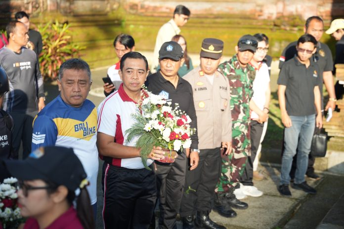 Selain gowes, pihaknya turut menyerahkan bendera kepada masyarakat dan melakukan penancapan bendera di area masuk Monumen I Gusti Ngurah Rai sebagai simbol semangat nasionalisme.