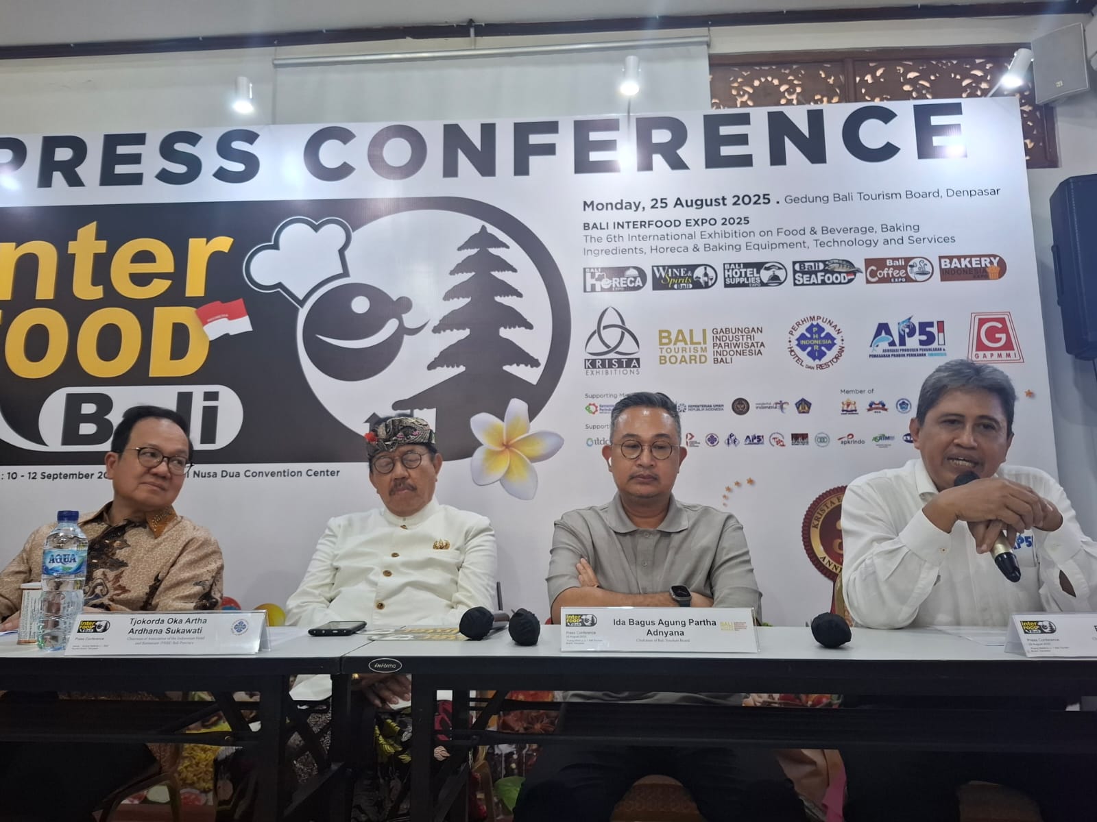 “Bali Interfood 2025 bukan hanya pameran dagang, tapi juga etalase kuliner Nusantara, termasuk kuliner khas Bali, agar lebih dikenal dunia. Ajang ini sekaligus membuka peluang bisnis baru di sektor makanan, minuman, dan horeca,” jelas Daud didampingi Tjokorda Oka Artha Ardana Sukawati (Ketua PHRI) Bali, Ida Bagus Agung Partha Adnyana (Ketua BTB) Bali dan Ketua Umum AP5I, Budhi Wibowo di Kantor Bali Tourism Board (BTB), Denpasar, Senin (25/8/2025).
