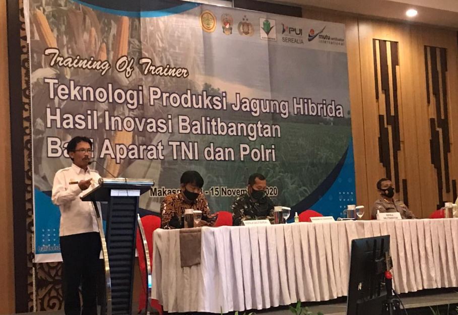 Badan Penelitian dan Pengembangan Pertanian (Balitbangtan) Kementerian Pertanian, menggelar Training of trainer (TOT) teknologi budi daya jagung hibrida berbasis korporasi bagi anggota TNI dan Polri. Acara berlangsung selama 3 hari pada 13-15 November 2020 di Harper Hotel Makassar, Sulawesi Selatan (Sulsel).