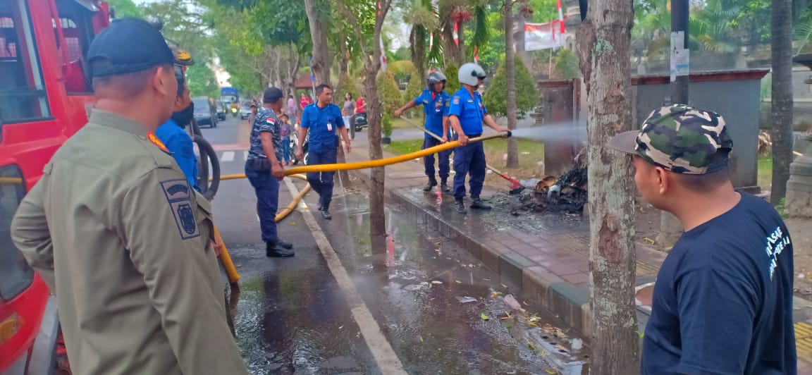 “Yang terbakar ban bekas sepeda motor. Lama penanganan sekitar 15 menit” ujar Darmawan. (Komang Tole)