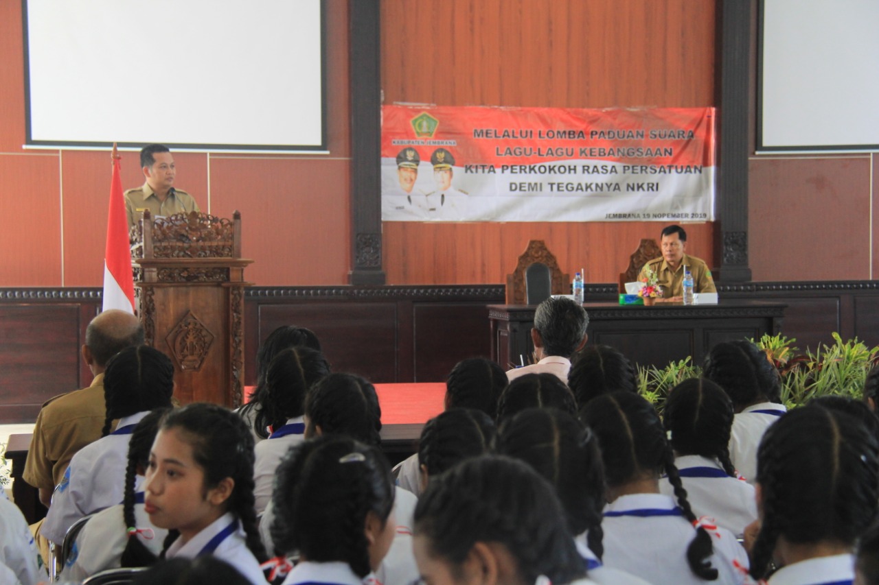 Diikuti oleh peserta SMP/MTs se-Jembrana, lomba paduan suara lagu-lagu kebangsaan diselenggarakan di Gedung Kesenian Dr. Ir. Soekarno, Selasa (19/11).