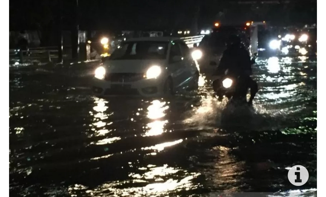 Banjir tersebut menyebabkan sebagian motor kesulitan melintas dan menepi untuk menunggu air surut, sedangkan mobil berjalan perlahan.
