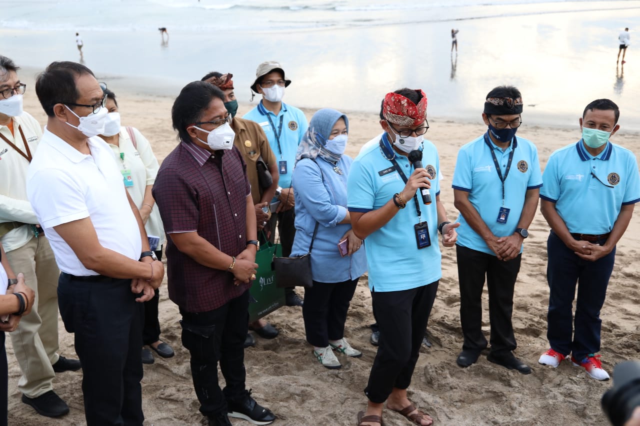 Bupati Badung I Nyoman Giri Prasta bersama Wakil Bupati Badung Ketut Suiasa mendampingi Menteri Pariwisata dan Ekonomi Kreatif Sandiaga Uno dalam kegiatan Kick off Revitalisasi Toilet di Destinasi Wisata Bali dan Destinasi Pariwisata Super Prioritas yang diselenggarakan di Pantai Kuta, Rabu (17/3).