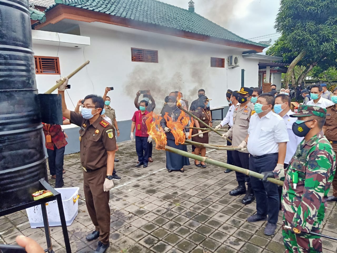Kejaksaan Negeri (Kejari) Jembrana, Rabu (10/2) memusnahkan barang bukti dari 16 perkara tindak pidana umum tahun 2020.