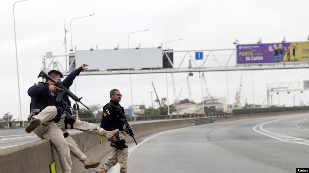 Petugas polisi federal terlihat di Jembatan Rio-Niteroi, di mana polisi bersenjata mengepung bus penumpang yang dibajak di Rio de Janeiro, Brasil 20 Agustus 2019. (Foto: Reuters)