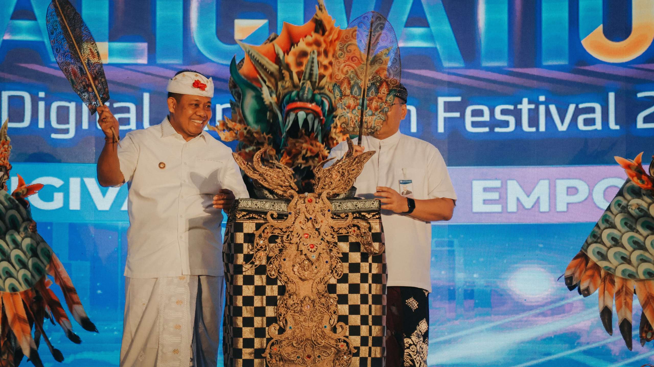 Ditandai dengan penancapan kayonan, Pj. Gubernur Bali, S.M. Mahendra Jaya didampingi Kepala Perwakilan Bank Indonesia Provinsi Bali, Erwin Soeriadimadja membuka Bali Digital Innovation (Baligivation) Festival 2024, di Graha Tirta Gangga, Kantor Perwakilan Bank Indonesia, Provinsi Bali, Selasa (23/4).
