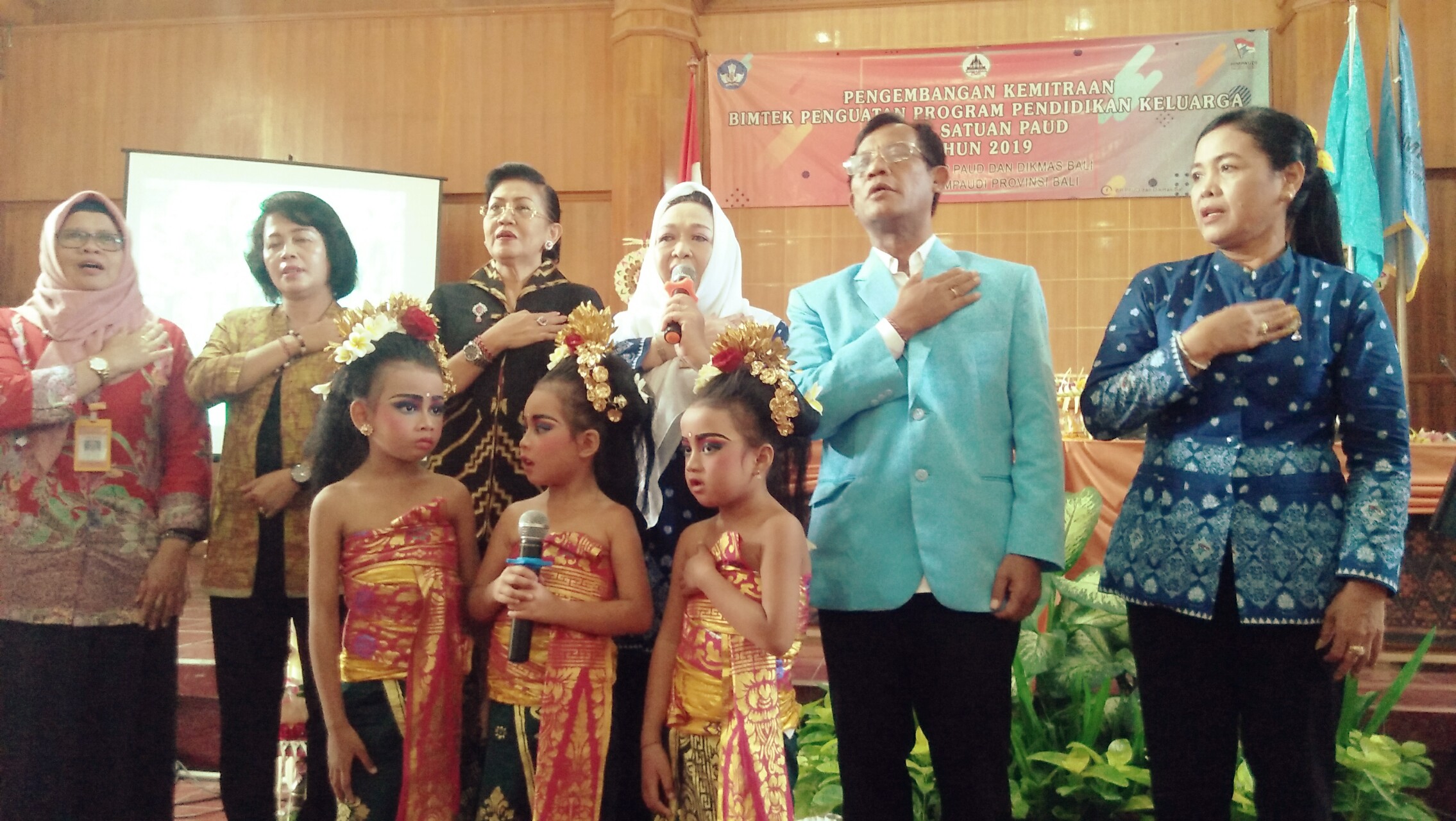 Pendekatan bimbingan kasih sayang yang tulus kepada anak-anak di rumah merupakan bagian penting bagi tumbuh kembang anak sebagai pendidikan ‘character building’ untuk bekal di masa depan, Hal tersebut diungkapkan oleh Bunda Paud Bali, Ni Putri Suastini Koster saat membuka Kegiatan ‘Pengembangan Kemitraan Penguatan Bimbingan Teknis (Bimtek) Program Pendidikan Keluarga pada Satuan PAUD 2019’ yang digelar Himpunan Tenaga Pendidik Anak Usia Dini (Himpaudi) Bali.