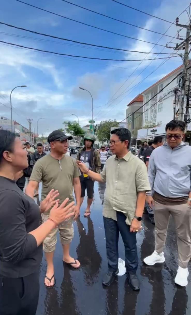 Bupati Badung I Wayan Adi Arnawa didampingi Plt. Kepala Dinas PUPR Kabupaten Badung serta Lurah Legian, Rabu (10/9), turun langsung meninjau penanganan banjir yang terjadi di kawasan Jalan Dewi Sri, Kuta. Kehadiran Bupati merupakan bentuk keseriusan Pemerintah Kabupaten Badung dalam merespons cepat keluhan masyarakat sekaligus memastikan penanganan teknis di lapangan berjalan dengan baik.