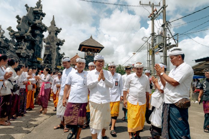 Bupati Adi Arnawa bersama Ny. Rasniathi Adi Arnawa saat menghadiri upacara Yadnya Nyekah di Desa Adat Pangsan Petang, Kamis (27/2).
