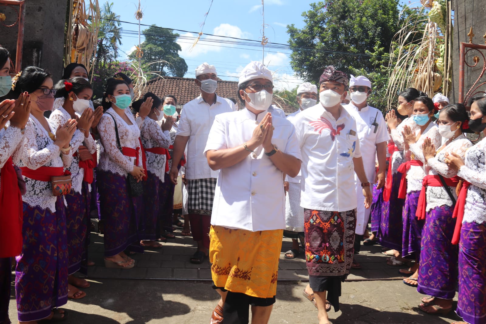 Bupati Badung I Nyoman Giri Prasta menghadiri dan melakukan persembahyangan bersama saat karya Pegat Sot di Pura Sakti Banjar Lebah Sari Desa adat Gulingan, Kamis (31/3).