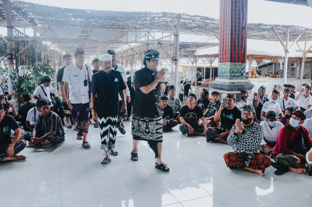 Bupati Giri Prasta saat menghadiri karya Pitra Yadnya, Manusa Yadnya dan Atma Wedana di Wantilan Desa Adat Jimbaran, Sabtu (3/9).