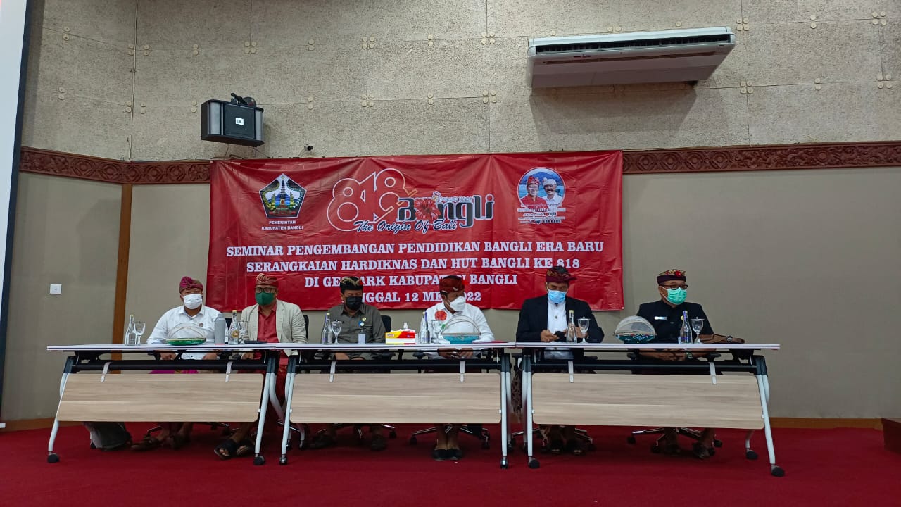 Dalam rangka memperingati Hari Pendidikan Nasional yang jatuh pada tanggal 2 Mei dan serangkaian kegiatan HUT ke-818 Kota Bangli, Panitia Pelaksana HUT Kota Bangli menyelenggarakan kegiatan Seminar Pengembangan Pendidikan Bangli Era Baru yang dibuka langsung oleh Bupati Bangli Sang Nyoman Sedana Arta, bertempat di Ruang Audiovisual Museum Geopark Batur pada Kamis (12/5/2022).