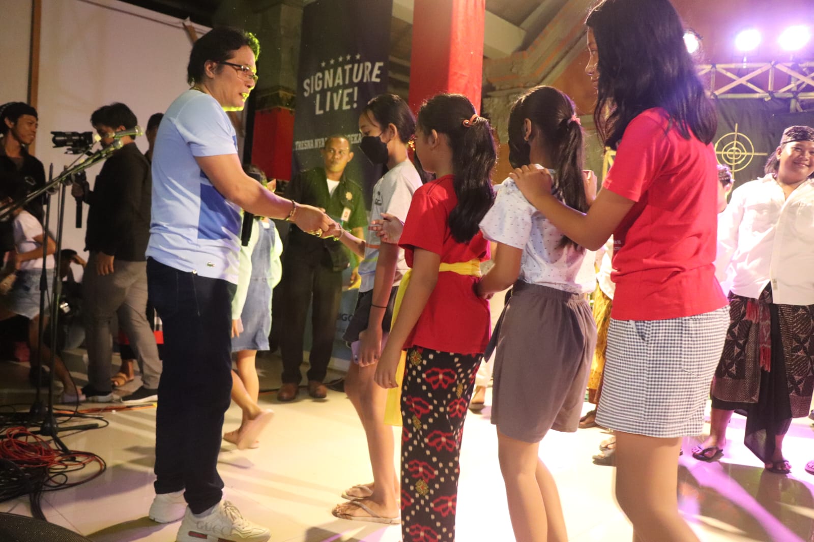 Bupati Giri Prasta saat menghadiri perayaan Hut ke-36 ST. Satria Budi Yowana Desa Adat Kelan, Desa Kelan, Kecamatan Kuta, Sabtu (29/10).
