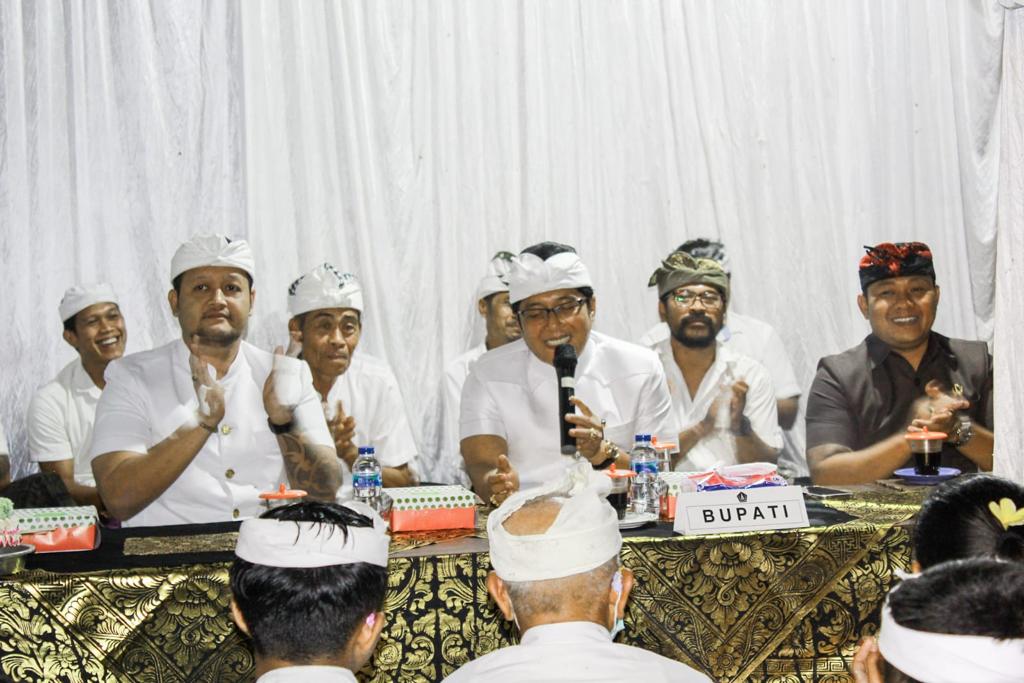 “Pelaksanaan Pujawali ini dapat dikatakan Puja itu dilaksanakan oleh Sulinggih bersama Pemangku dan Walinya dilaksanakan oleh welaka, ada Sekaa Gong, Pesantian, Topeng Sidakarya, dan harapannya dalam pelaksanaan upacara ini dilaksanakan dengan cara gotong royong, dan bersama-sama dengan rasa tulus ikhlas, agar apa yang kita laksanakan bisa berjalan dengan baik dan lancar sesuai yang diharapkan, dan juga merupakan stiti bakti kita kepada Ida Betara leluhur supaya kita semua diberi keselamatan agar segilik, seguluk, selunglung, Sebayantaka Nyujur Jagad, Gemah, Ripah, Loh Jinawi, Tate Tentrem Kertha Rahaja,” ucap Bupati Giri Prasta.