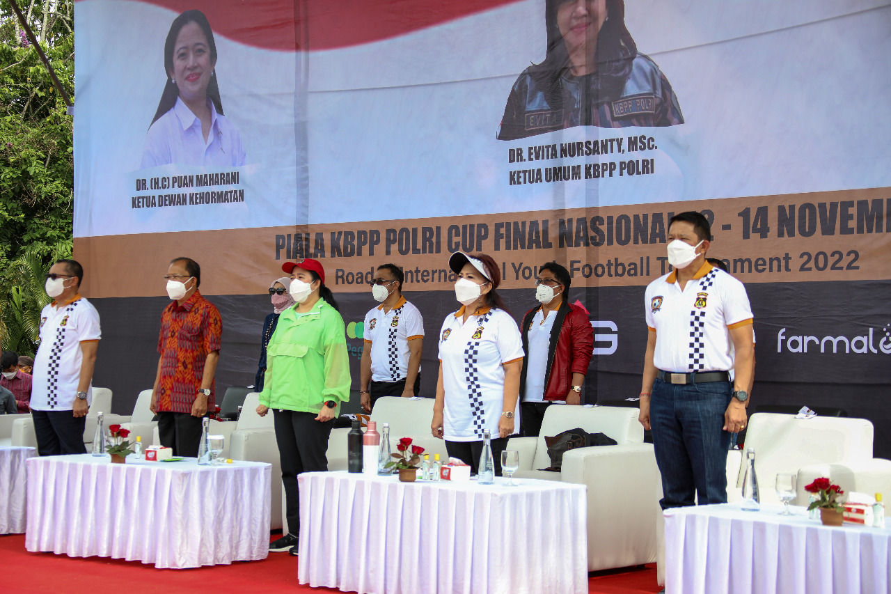 Sebagai bentuk dukungan dalam pembinaan bibit pemain sepakbola sejak usia dini, Bupati Badung Nyoman Giri Prasta bersama Ketua DPR RI Puan Maharani, Gubernur Bali Wayan Koster, Walikota Denpasar IGN Jaya Negara, Kapolda Bali Irjen Pol Putu Jayan Danu Putra dan Ketua Umum KBPP Polri Evita Nursanty, menghadiri acara penutupan Turnamen Nasional Sepakbola Dreams Come True Piala Keluarga Besar Putra Putri (KBPP) Polri kelompok U-10, U-11, U-12 dan U-13 di Lapangan Niti Mandala Renon Denpasar, Minggu (14/11).