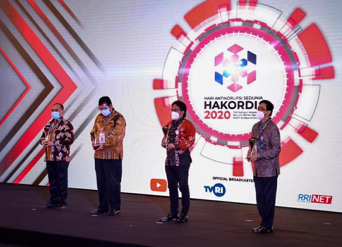 Komisi Pemberantasan Korupsi (KPK) RI menggelar acara puncak Peringatan Hari Antikorupsi Sedunia (Hakordia) 2020 secara fisik dan virtual di Gedung Penunjang KPK, Rabu (16/12). Presiden Joko Widodo (Jokowi) menghadiri acara puncak Hakordia 2020 secara virtual dari Istana Kepresidenan didampingi Menko Polhukam Mahfud MD dan Menteri Sekretaris Negara Pratikno. Peringatan Hakordia tahun 2020 dengan tema “Membangun Kesadaran Seluruh Elemen Bangsa Dalam Budaya Anti Korupsi” ini juga dirangkaikan dengan penyerahan penghargaan kepada instansi dan lembaga negara dari tingkat pusat, provinsi hingga kabupaten/kota, sebagai bentuk apresiasi KPK, atas upaya dan usaha yang dilakukan dalam mencegah terjadinya praktik korupsi.