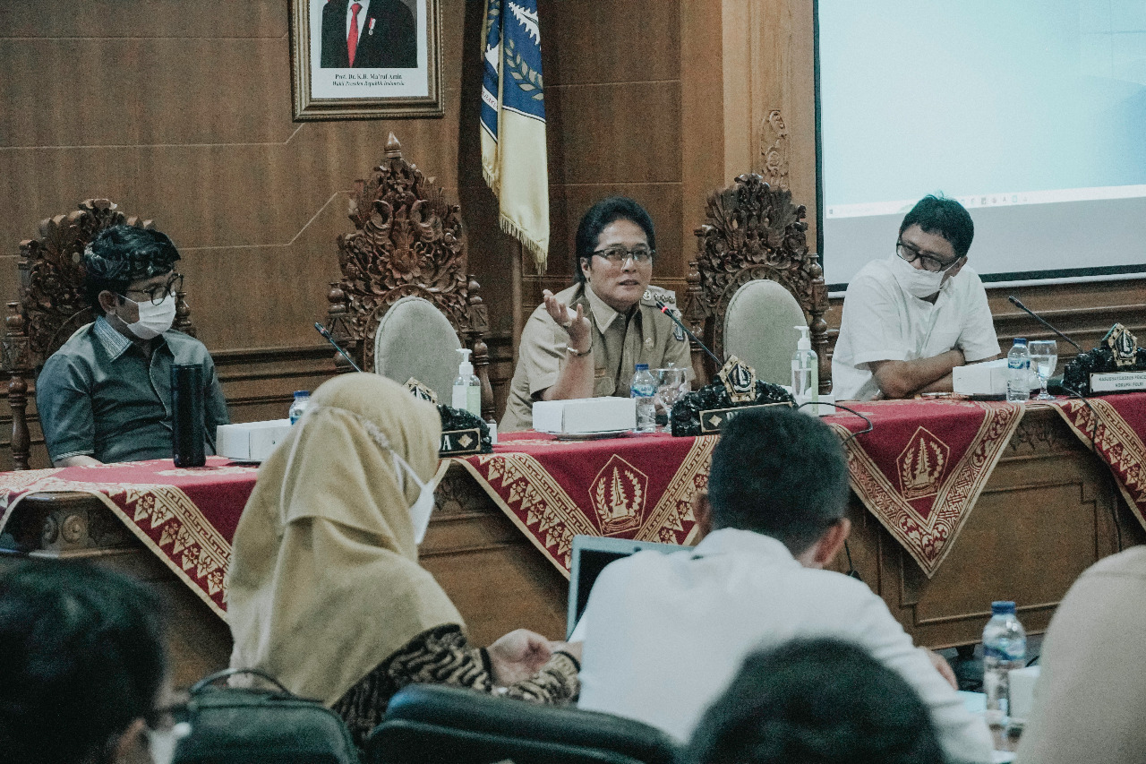 Bupati Badung I Nyoman Giri Prasta didampingi Sekretaris Daerah Kabupaten Badung I Wayan Adi Arnawa menghadiri acara Penyampaian Data dan Informasi terkait dengan pencegahan korupsi pada tata kelola pupuk bersubsidi, bertempat di Ruang Kriya Gosana, Puspem Badung, Senin (5/9).