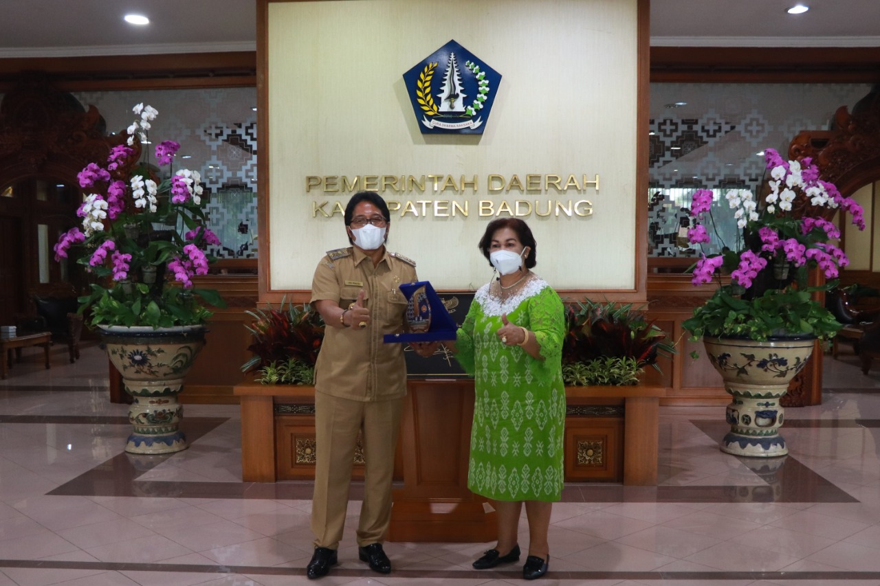 Bupati Badung I Nyoman Giri Prasta menerima kunjungan kerja (kunja) Bupati Rote Ndao Provinsi Nusa Tenggara Timur (NTT) Paulina Haning Bullu beserta jajaran terkait Mall Pelayanan Publik dan Desa Wisata, bertempat di Ruang Tamu Bupati Puspem Badung, Senin (11/4). Dalam kunjungannya Bupati Rote Ndao Paulina Haning Bullu didampingi oleh Sekda Rote Ndao Jonas M. Selly, Asisten Perekonomian dan Pembangunan Armis Saek, Kadis PMPTSP Daud Daniel, Kadis Kominfo Welhelmus, Kadis PMD James Theriks.