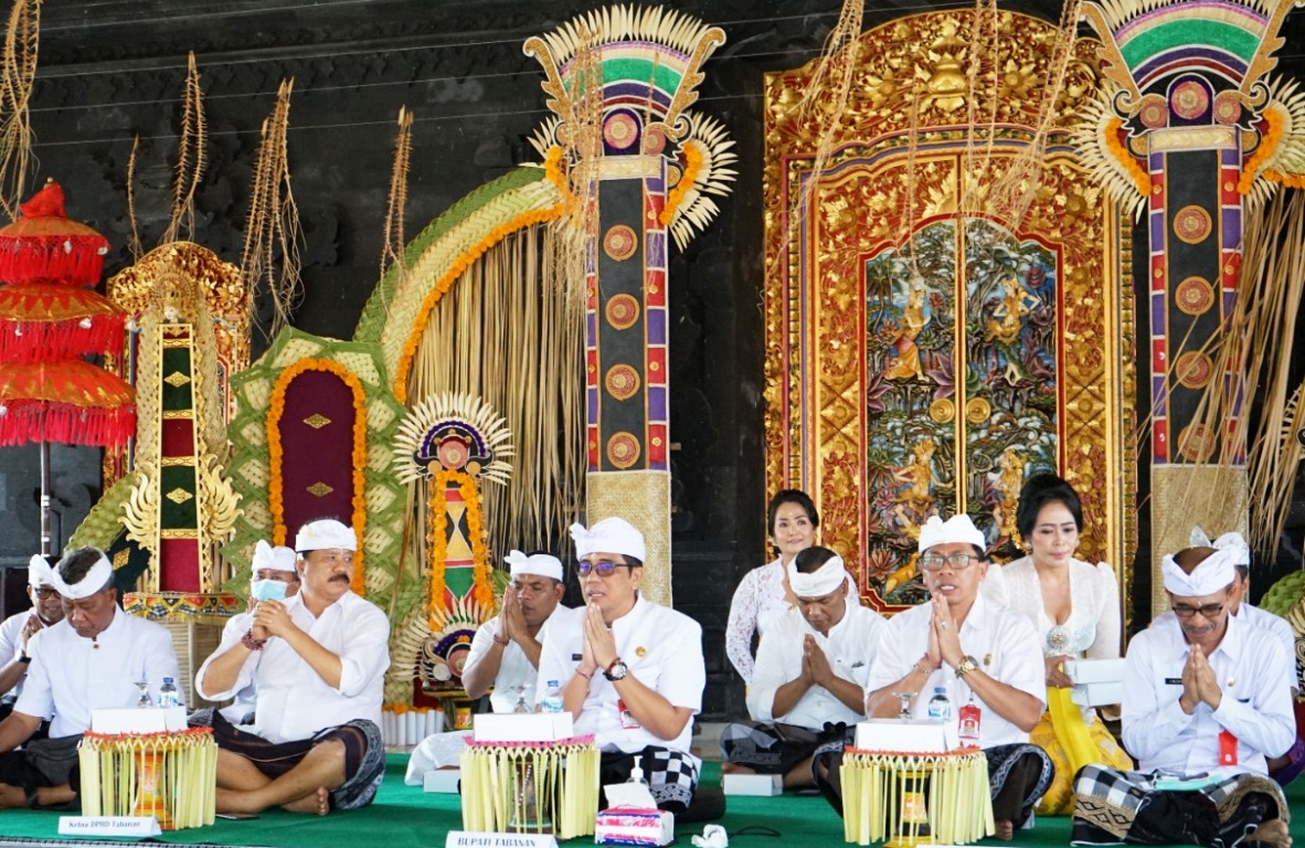 Bersatunya warga Banjar Kabayan, Desa Nyambu, Kecamatan Kediri dalam melaksanakan Karya Ngenteg Linggih, Mupuk Pedagingan Wraspati Kalpa, Pedudusan Alit Caru Manca Sata Medurga, mendapat apresiasi dan dihadiri langsung oleh Bupati Tabanan Dr. I Komang Gede Sanjaya, SE, MM, beserta jajaran, Sabtu, (23/7).