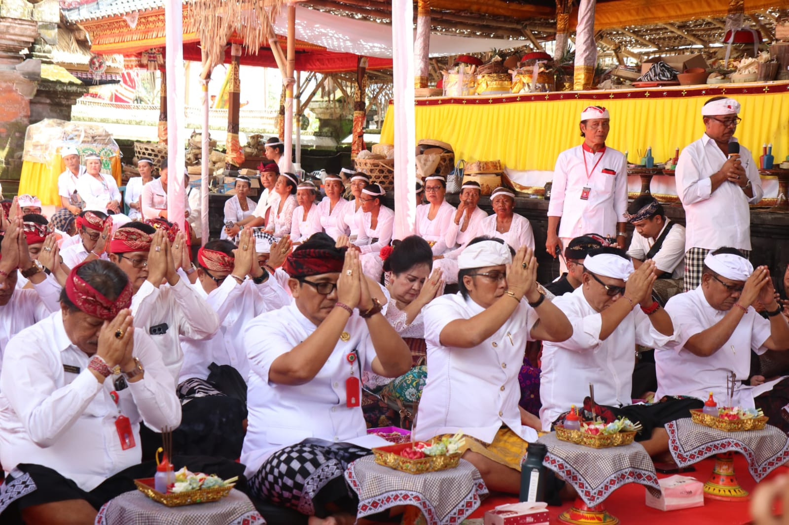 Bupati Tabanan, Dr. I Komang Gede Sanjaya, S.E., M.M., bersama Wakil Gubernur Bali, I Nyoman Giri Prastas, menghadiri Uleman Upacara Pemelaspasan Kantor Desa Kesiut, Kecamatan Kerambitan, Tabanan, Uleman Ngupasaksi dalam rangkaian Karya Agung Mamungkah, Ngenteg Linggih, Ngusaba Desa, dan Tawur Balik Sumpah Agung di Pura Desa, Desa Adat Wanasari, Tabanan, Rabu (2/4). Acara ini juga dihadiri oleh sejumlah pejabat penting lainnya, termasuk anggota DPRD Bali, Wakil Bupati Tabanan dan anggota DPRD Kabupaten Tabanan, Sekda Tabanan serta para perangkat daerah terkait di lingkungan Pemkab Tabanan.