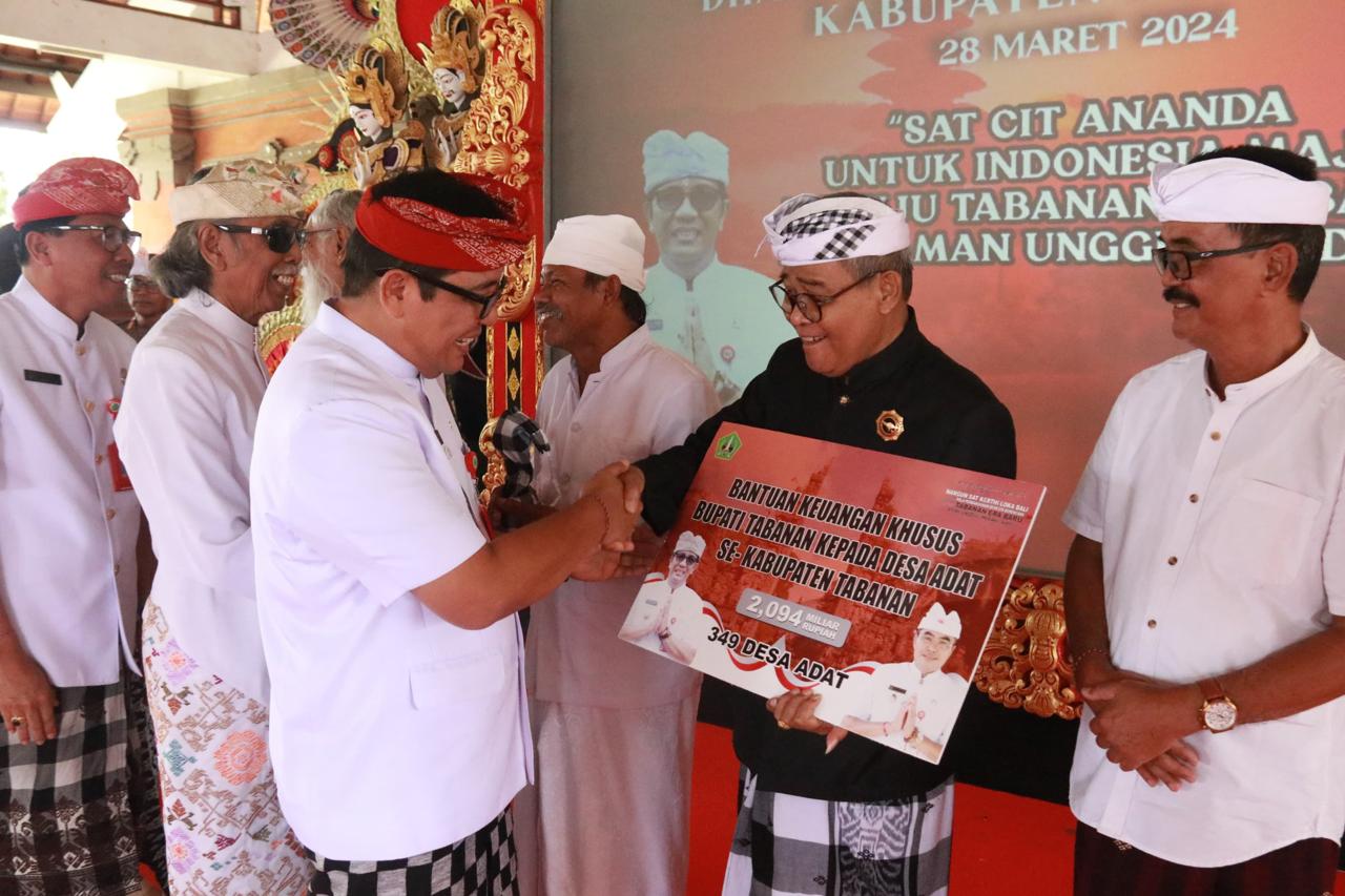 Dalam acara ini juga sekaligus dilakukan penyerahan punia (genta) kepada Ketua Paruman Sulinggih Kabupaten Tabanan, Perwakilan Mangku Kahayangan Jagat se-Kabupaten Tabanan, sekaligus penyerahan bantuan BKK (Bantuan Keuangan Khusus) Tabanan kepada 349 Desa Adat se-Kabupaten Tabanan sekitar Rp. 2.094.000.000,- dan kepada 428 subak se-Kabupaten Tabanan, terdiri dari 233 subak, 11 subak Gede, 1 Subak Agung, 183 Subak Abian sekitar Rp. 1.540.800.000,-
