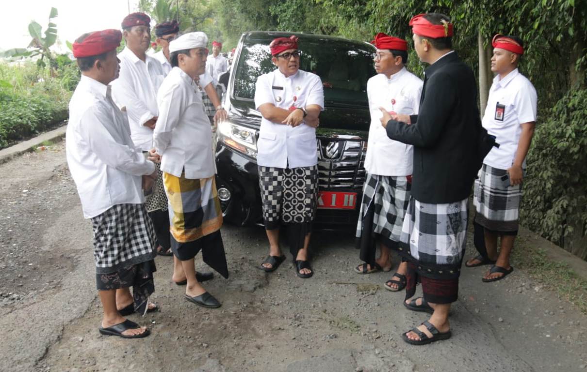 Bupati Sanjaya meninjau jalan di seputaran Desa Jegu, Jumat, (2/6).
