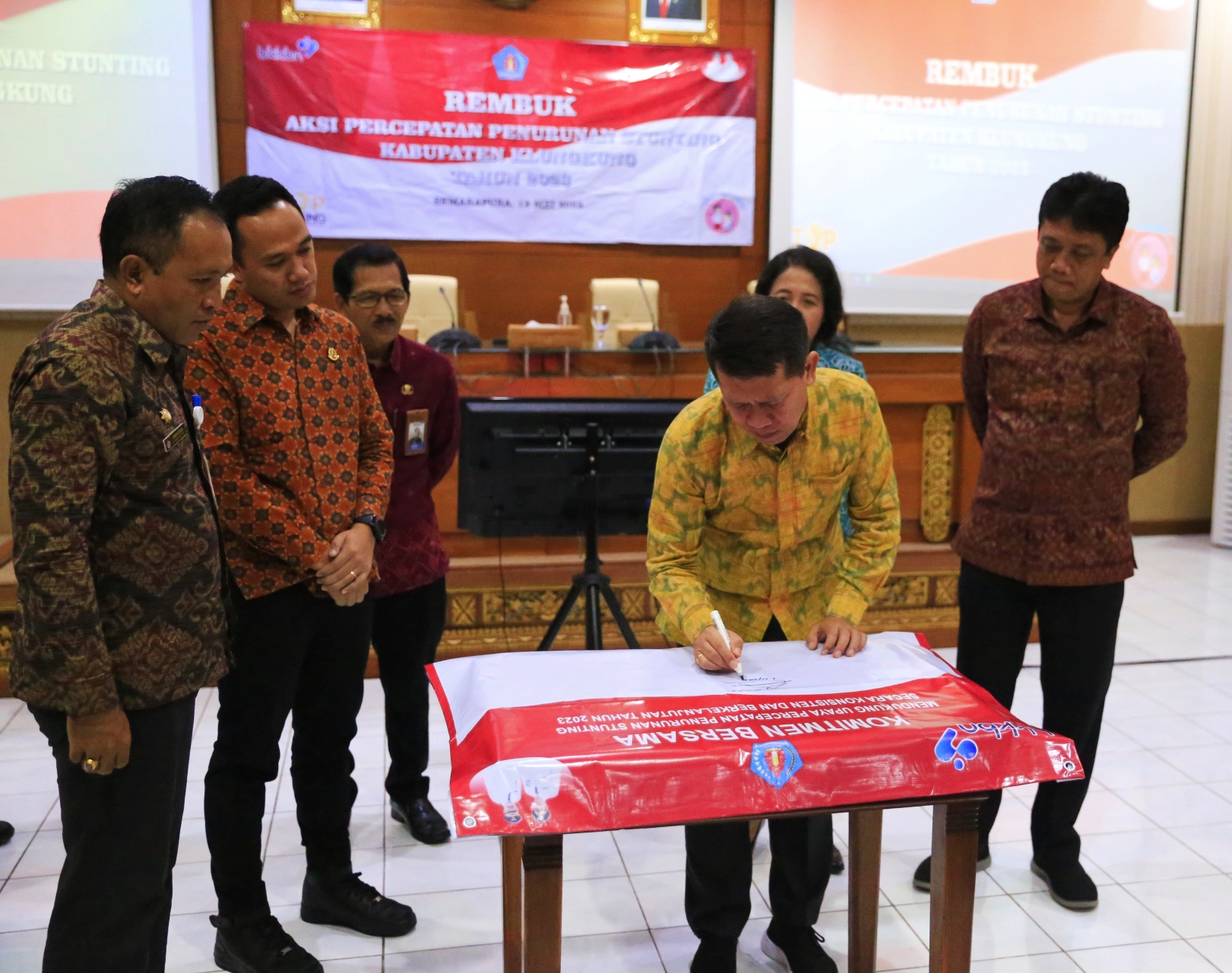 Kepala Dinas Pemberdayaan Masyarakat dan Desa, Pengendalian Penduduk dan Keluarga Berencana (PMDPPKB) Klungkung Wayan Suteja, menyampaikan tujuan kegiatan diadakan adalah untuk menyampaikan hasil analisis situasi dan rancangan rencana kegiatan intervensi penurunan stunting terintegrasi; penyampaian Kesepakatan dan Pembacaan hasil Kesepakatan rencana kegiatan Intervensi penurunan stunting terintegrasi; membangun komitmen publik dalam kegiatan pencegahan dan penurunan stunting secara terintegrasi. Dana yang digunakan pada Kegiatan ini, antara lain berasal dari DAK Non fisik BOKB TA 2023.