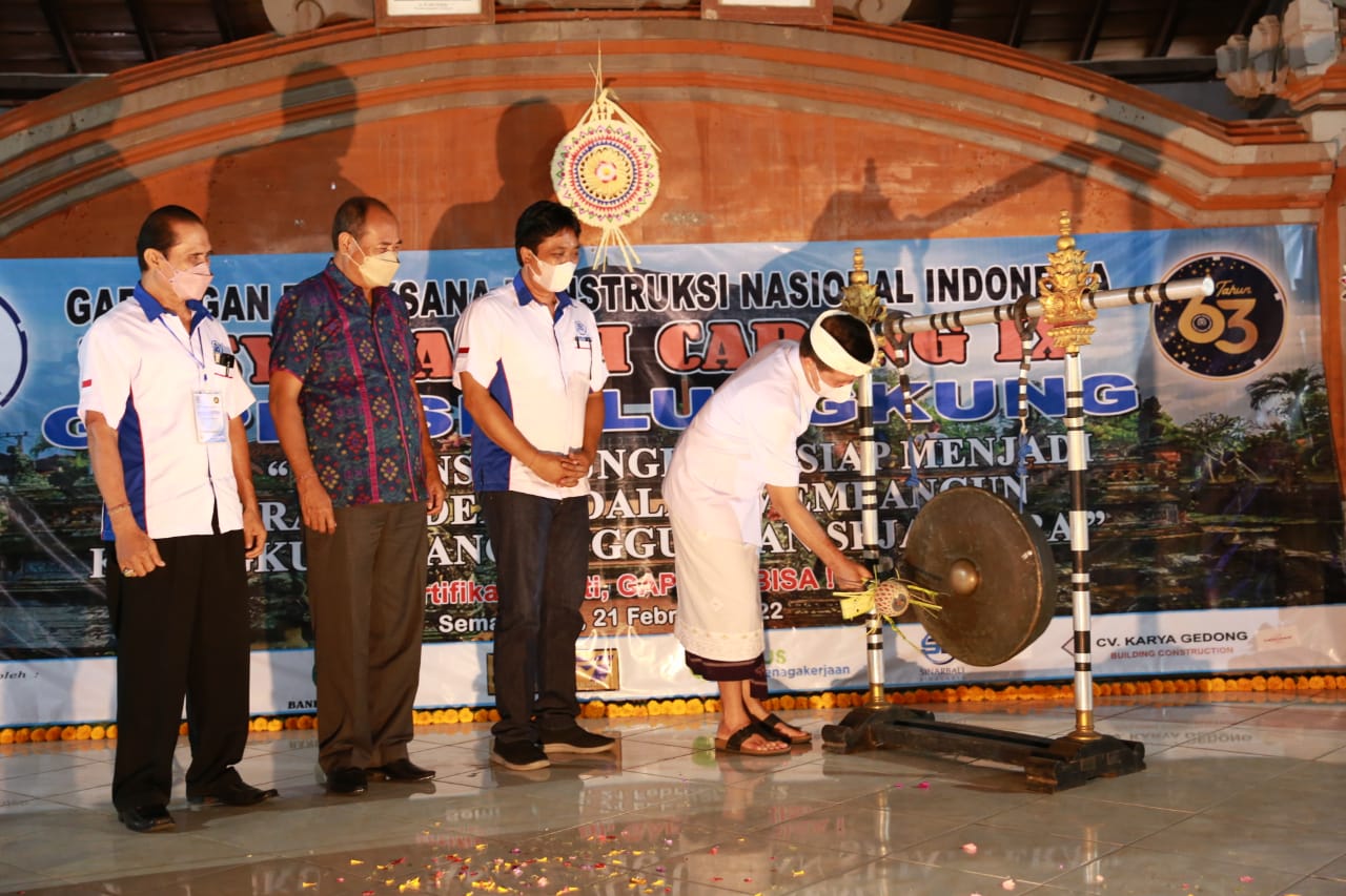 Bupati Klungkung, I Nyoman Suwirta membuka kegiatan Musyawarah IX Gabungan Pelaksana Kontruksi Nasional Indonesia (Gapensi) BPC Klungkung di Aula Sanggar Kegiatan Belajar (SKB), Kecamatan Banjarangkan, Senin (21/2). Adapun tema yang diusung dalam musyawarah ini yaitu “Gapensi Klungkung siap menjadi mitra terdepan dalam membangun Klungkung yang unggul dan sejahtera”. Turut hadir Wakil Ketua II DPRD Kabupaten Klungkung, Tjokorda Gde Agung serta instansi terkait lainnya.