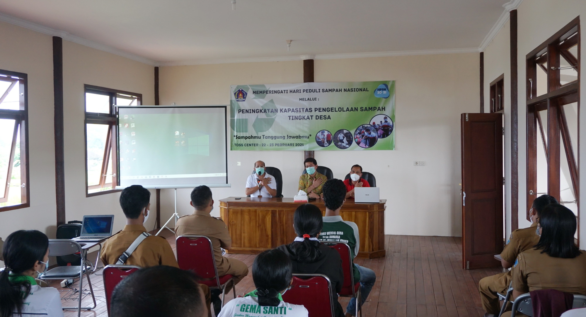 Untuk menangani masalah sampah, perlu kiranya kesadaran dan niat yang tulus dari diri sendiri untuk menjaga lingkungan agar tetap bersih. Hal tersebut disampaikan ketika Bupati Klungkung membuka Pelatihan Peningkatan Kapasitas Pengelolaan Sampah Tingkat Desa di Gedung Edukasi Lantai II TOSS Center, Dusun Karengdadi, Desa Kusamba, Kecamatan Dawan, Kabupaten Klungkung, Senin (22/2). Kegiatan ini dilaksanakan dalam rangka Memperingati Hari Peduli Sampah Nasional. Turut hadir Kadis LHP Kabupaten Klungkung, I Ketut Suadnyana, Narasumber Bali Tresna Sujati, I Nyoman Suarsana serta instansi terkait lainnya.
