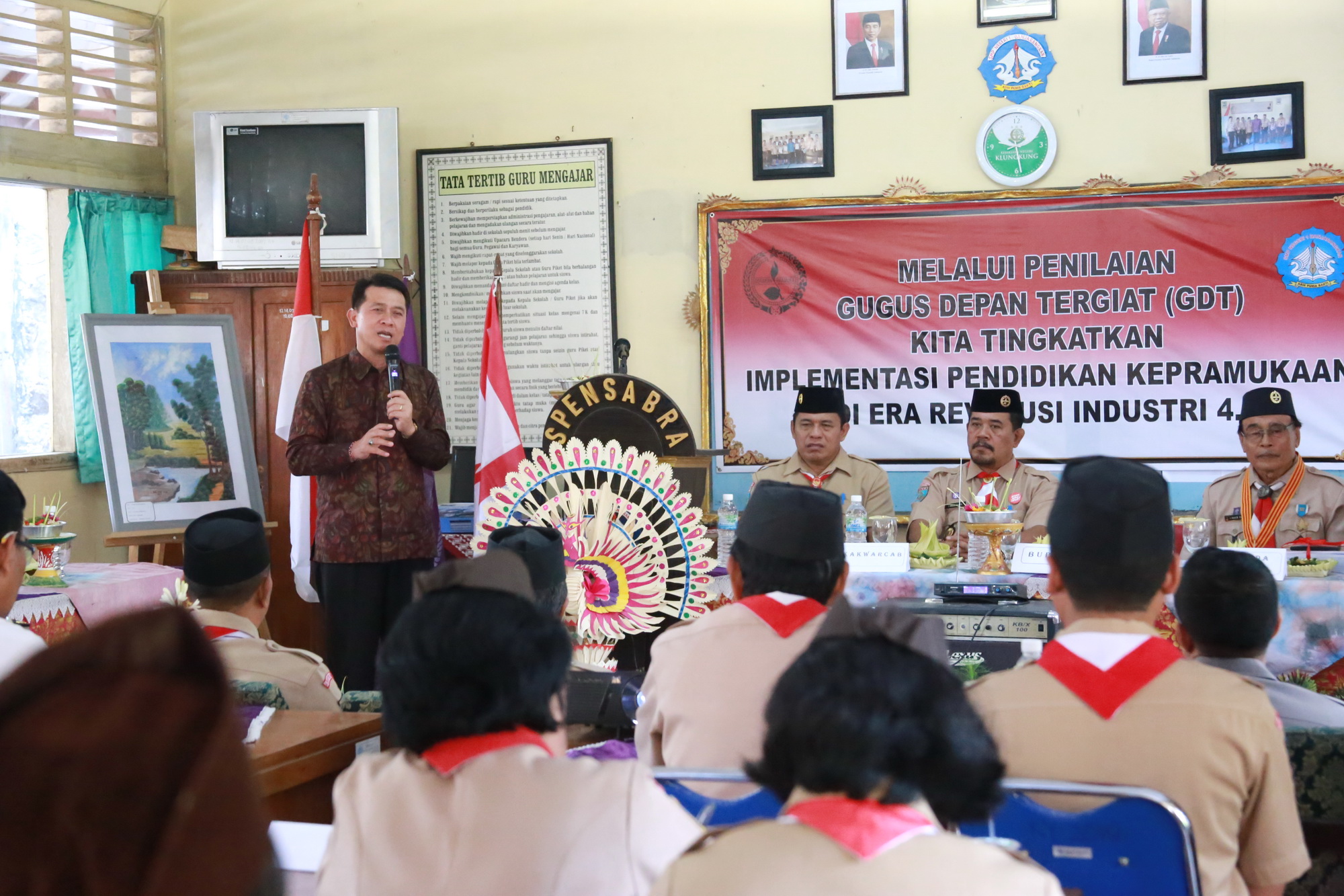 Bupati Klungkung I Nyoman Suwirta bersama Wakil Bupati Klungkung I Made Kasta menghadiri Penilaian Lomba Gugus Depan Tergiat (GDT) Kwartir Daerah Bali Tahun 2019 di SMP Negeri 1 Banjarangkan, Kecamatan Banjarangkan, Kabupaten Klungkung, Jumat (25/10) Pagi. Dalam kegiatan tersebut turut hadir Tim Rombongan Penilai Lomba yang dipimpin Ketua Gerakan Pramuka Kwartir Daerah Bali Ir. Made Dana, Kepala Dinas Pendidikan Kabupaten Klungkung I Dewa Gede Darmawan serta para guru pengajar.