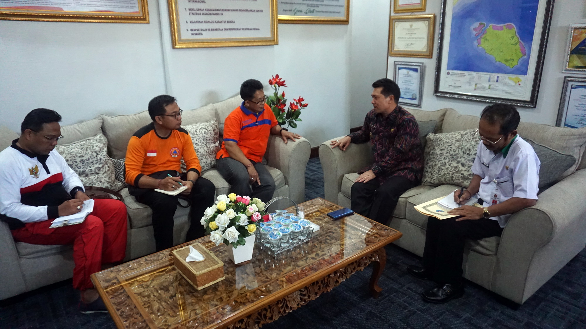 Bupati Klungkung I Nyoman Suwirta mengadakan rapat dengan instansi terkait, guna menyikapi Kebakaran yang terjadi di Wantilan Reringgitan Pura Penataran Agung Ped, Nusa Penida pada 19 Agustus 2019 malam Hari, bertempat di Ruang Kerja Kantor Bupati Klungkung, pada Rabu (21/08/2019).