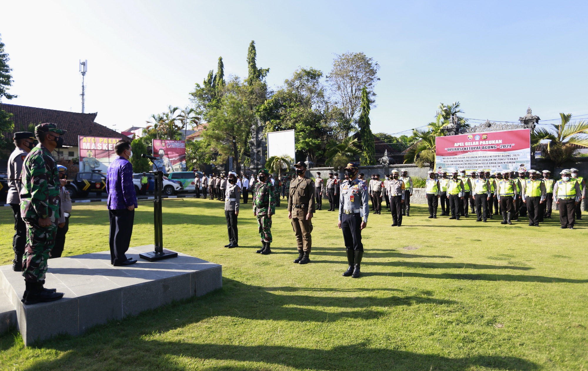 Bupati Klungkung, I Nyoman Suwirta menjadi pemimpin Apel Gelar Pasukan Operasi Ketupat Tahun 2021 di Lapangan Polres Klungkung, Rabu (5/5). Apel tersebut dilaksanakan sebagai bentuk pengecekan akhir kesiapan pelaksanaan Operasi Ketupat-2021 dalam rangka pengamanan menjelang hari raya Idul Fitri 1442 Hijriah. Turut hadir Kapolres Klungkung, Dandim 1610/Klungkung serta OPD terkait lainnya.