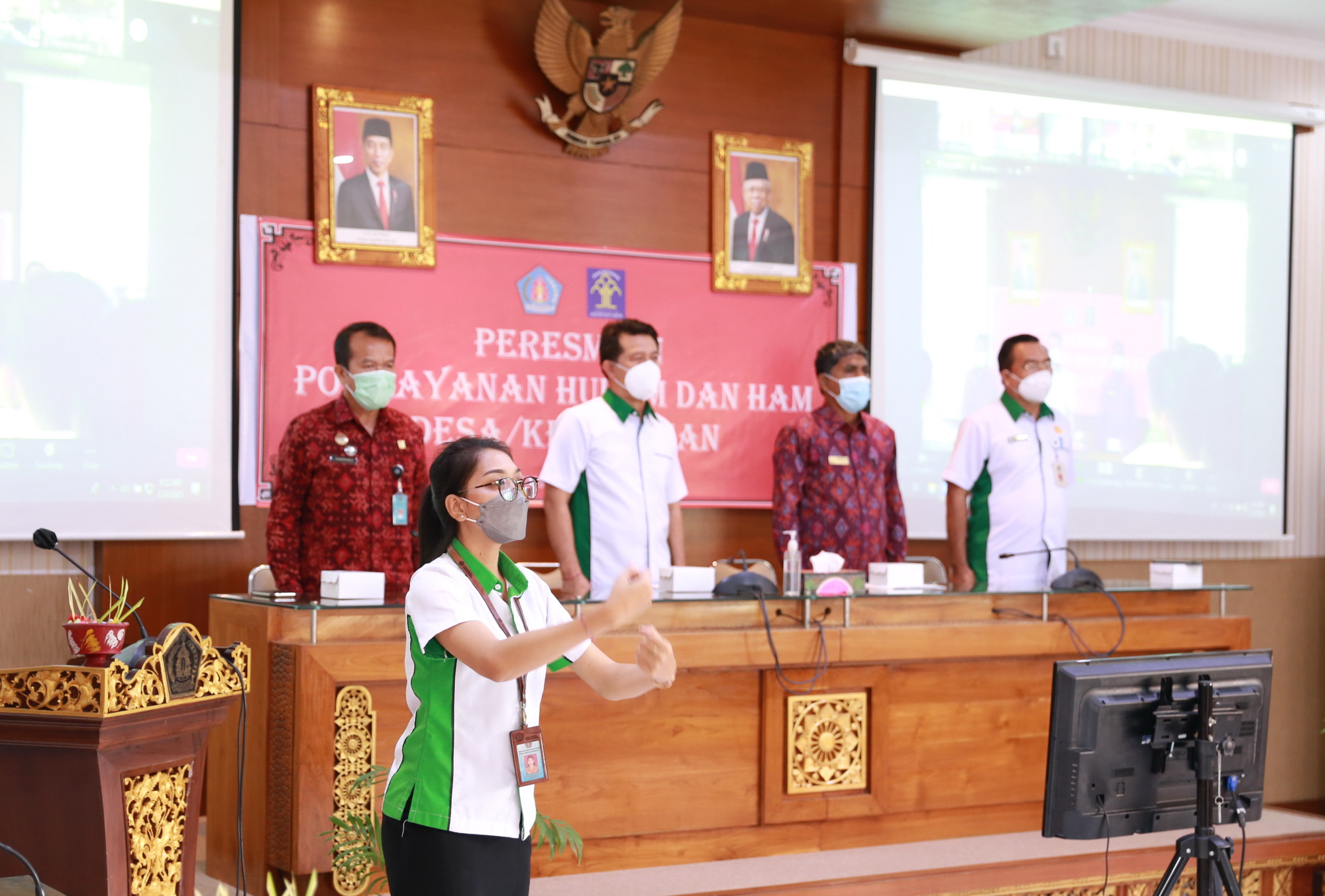 Dalam rangka pendekatan akses Layanan Hukum pada tingkat Desa/Kelurahan dengan pemberdayaan Kelompok Keluarga Sadar Hukum sebagai paralegal dalam menyediakan akses keadilan berupa informal justice yakni pemberian pertolongan pertama tehadap masalah hukum bagi masyarakat desa/kelurahan. Bupati Klungkung, I Nyoman Suwirta meresmikan Pos Layanan Hukum dan HAM Desa/Kelurahan (Posyankumhamdes) se-Kabupatem Klungkung, sekaligus pembukaan pelaksanaan Diseminasi Penguatan Pelayanan Publik Berbasis Hak Asasi Manusia (HAM) pada UPT di Jajaran Kanwil Kementerian Hukum dan HAM Bali di Ruang Rapat Praja Mandala Kantor Bupati Klungkung, Rabu (24/3/2021).