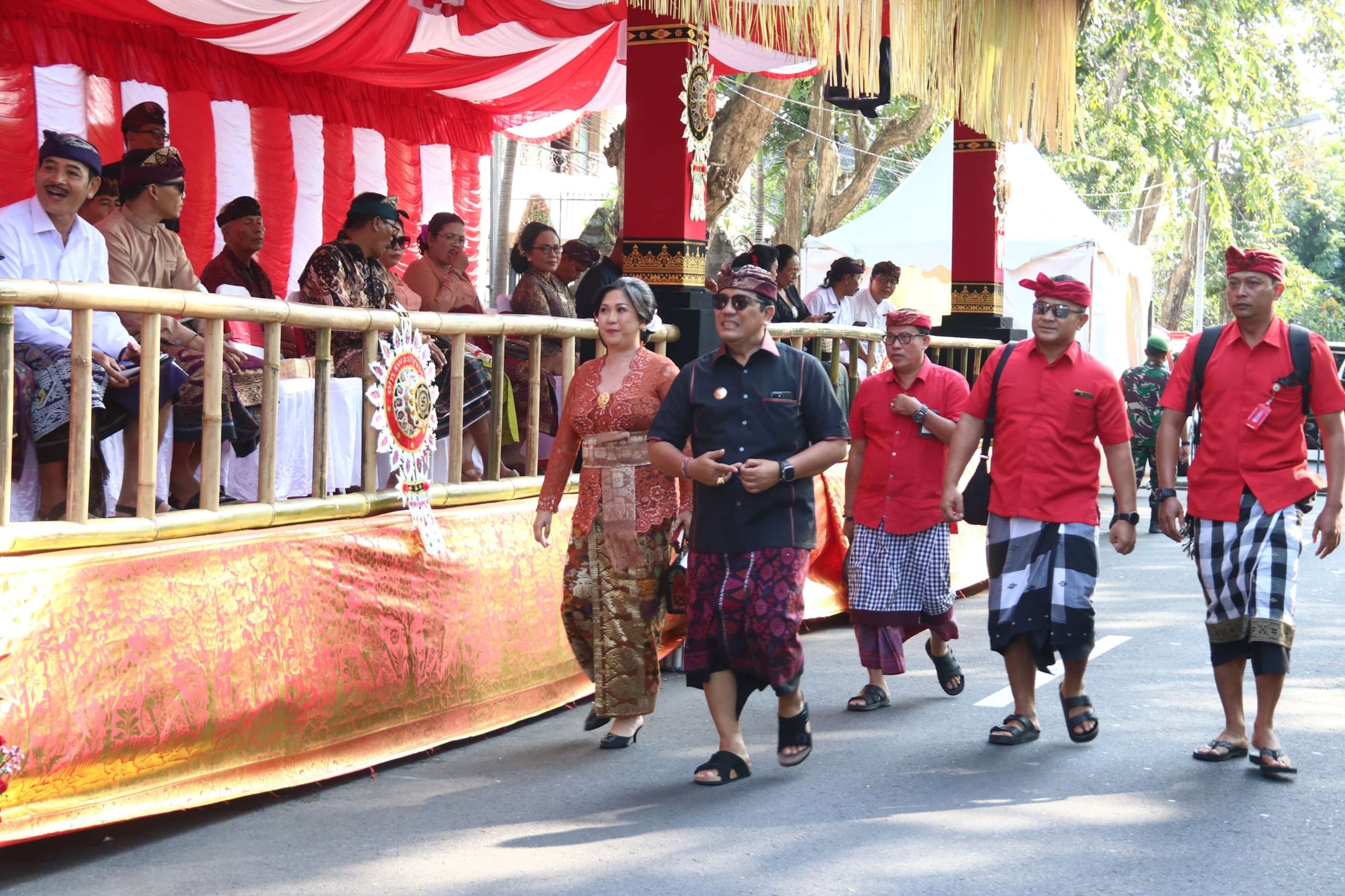Bupati Tabanan, Dr. I Komang Gede Sanjaya.,S.E.,M.M beserta Istri, Ny. Rai Wahyuni Sanjaya yang juga selaku Ketua Tim Penggerak (TP) PKK Kabupaten Tabanan, hadiri pelaksanaan Peed Aya (Pawai) Pembukaan PKB (Pesta Kesenian Bali) XLVI Tahun 2024 dengan tema “Jana Kerthi Paramaguna Wikrama” yang digelar meriah di depan Monumen Perjuangan Rakyat Bali Niti Mandala Renon, Denpasar, Sabtu, (15/6).